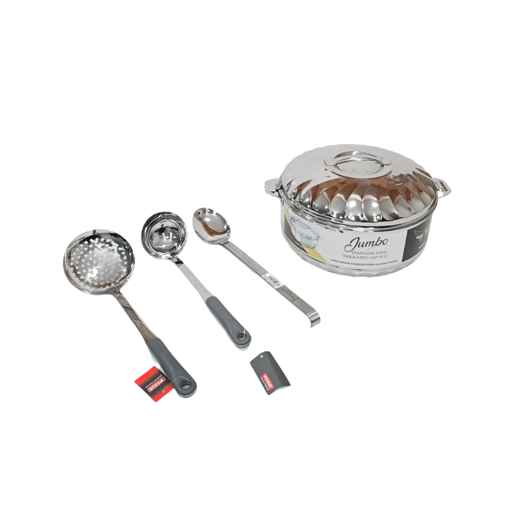 تضم المجموعة ثلاث ملاعق متميزة، مصنوعة من الفولاذ المقاوم للصدأ عالي الجودة. تتميز هذه الملاعق بمقابض مريحة ، مما يضمن سهولة الاستخدام أثناء تحريك الطعام أو غمره في الحافظة. تصميمها المثالي يمنحك راحة أثناء الطهي وتقديم الطعام بدون قلق من الحرارة.