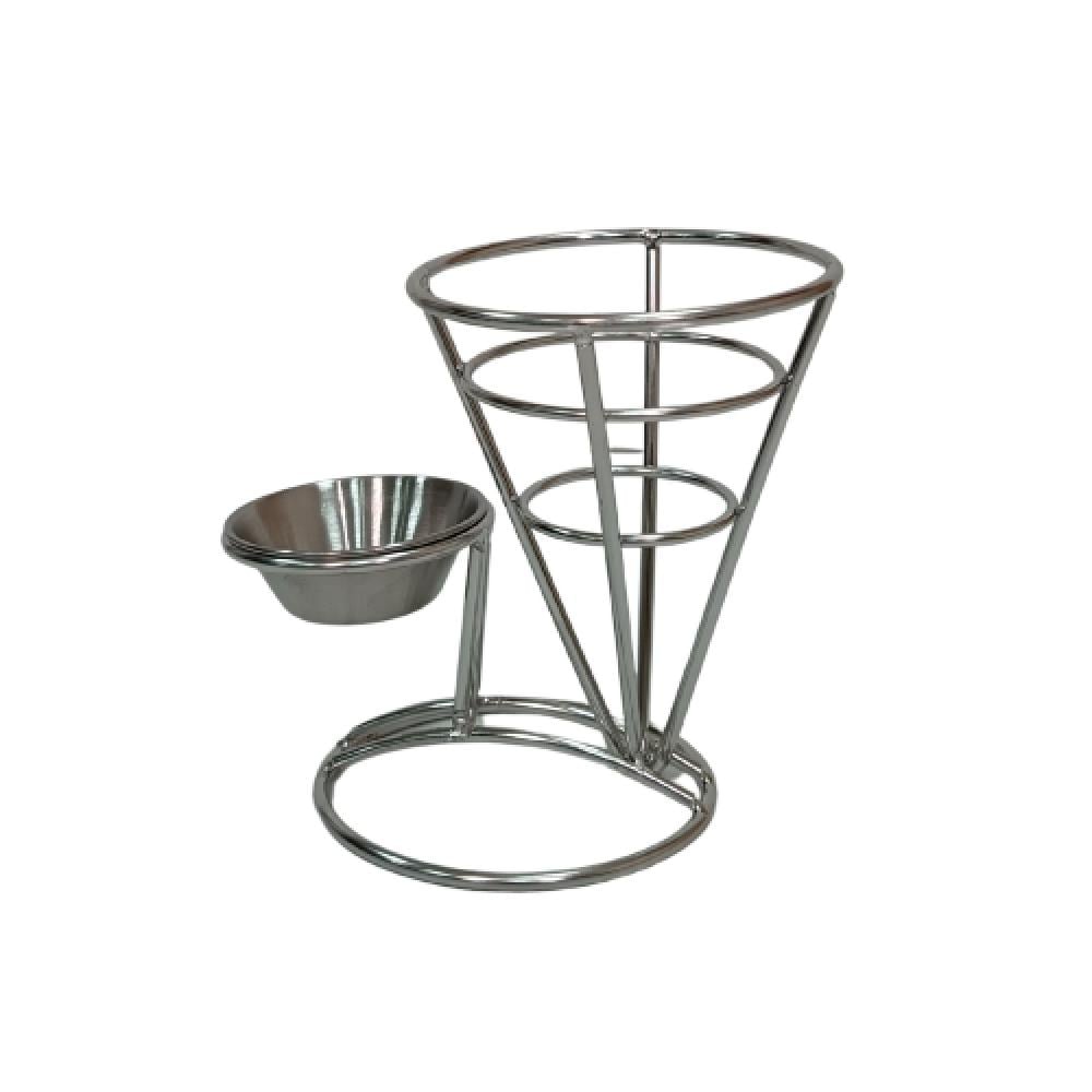 قدّم البطاطس المقرمشة بطريقة فاخرة وجذابة مع حامل البطاطس المصنوع من الستانلس ستيل اللامع والمزوّد بصحن صغير لتقديم الصوص أو الكاتشب. تصميم عملي وأنيق يضيف لمسة جمالية لطاولتك سواء في المنزل أو في المقاهي والمطاعم.
