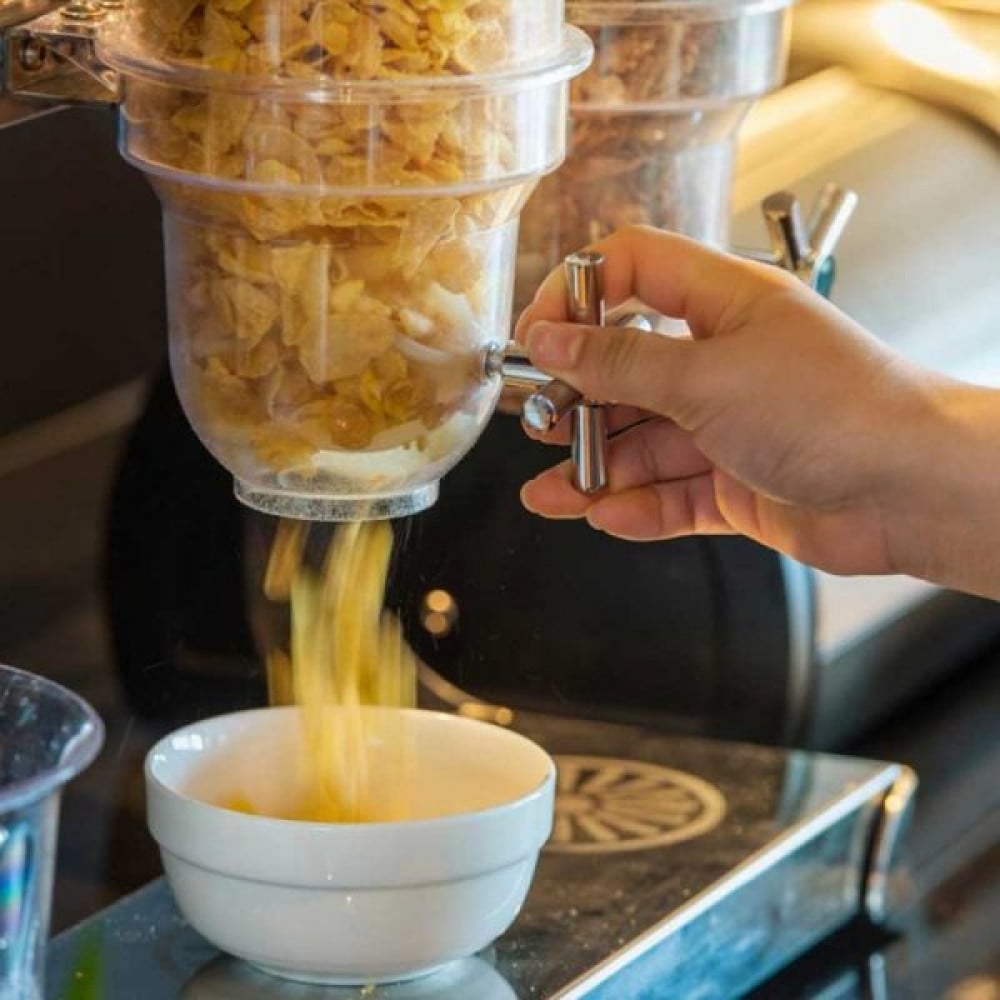 موزع وحافظة كورن فليكس مزدوج يقاعدة ستانلس ستيل مريح للاستخدام وعملي.