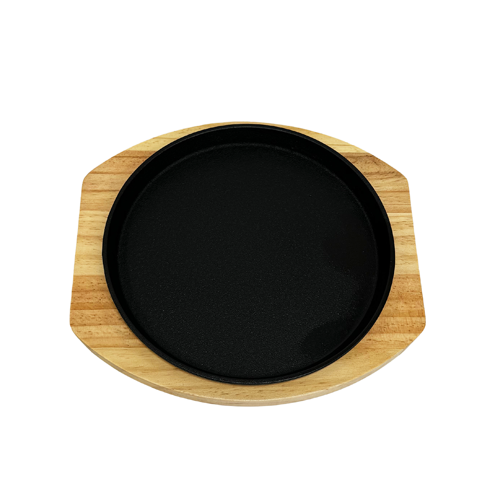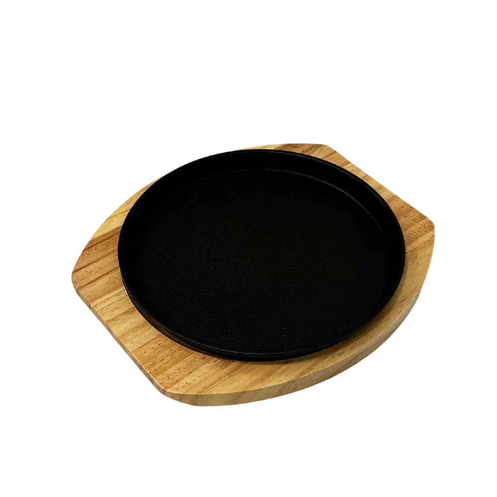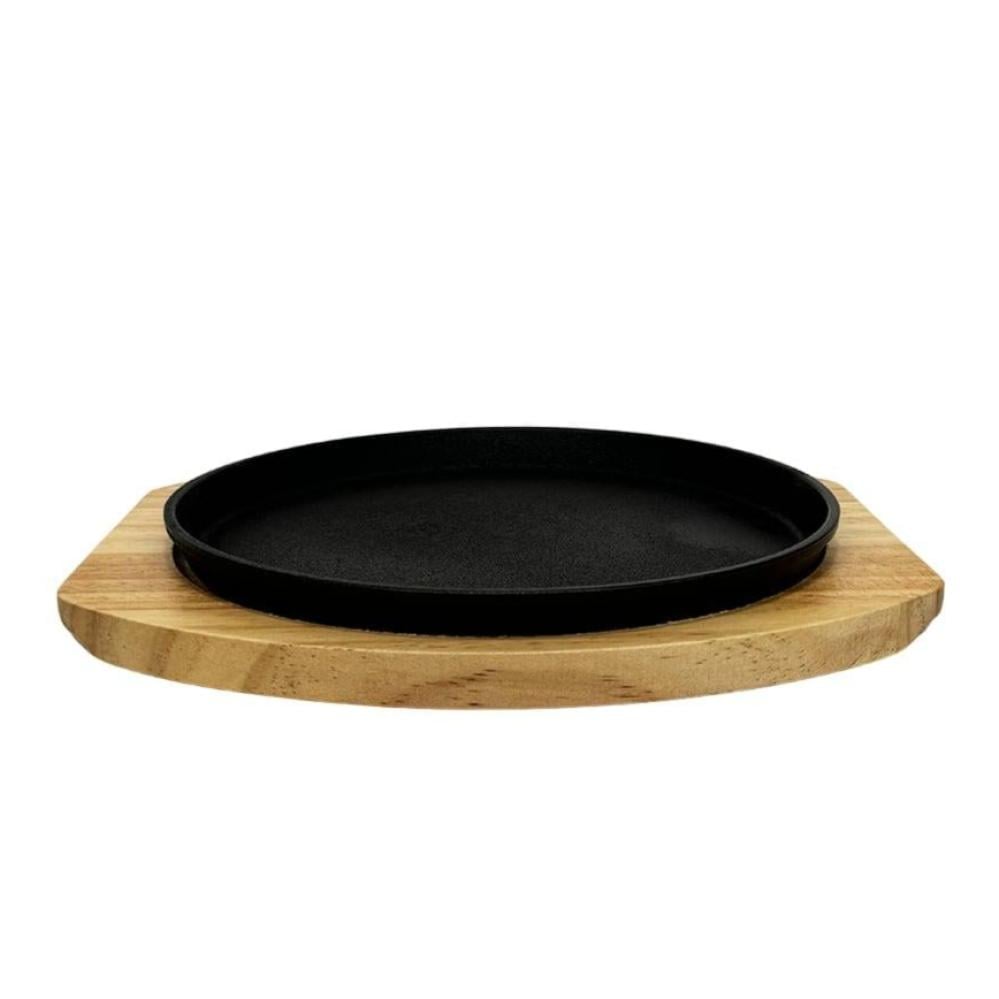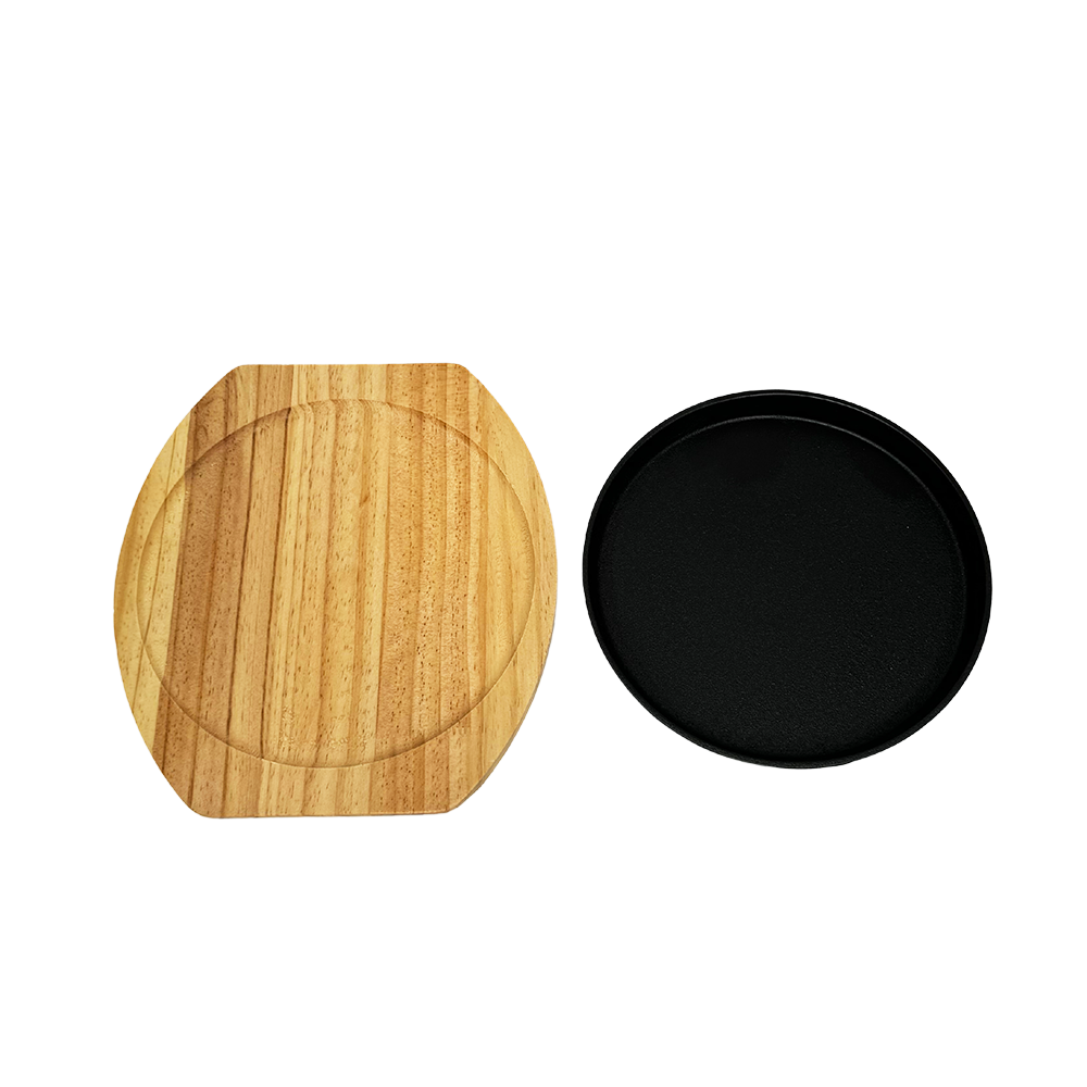 صحن زهر دائري اسود وقاعدة خشبية 26 سم