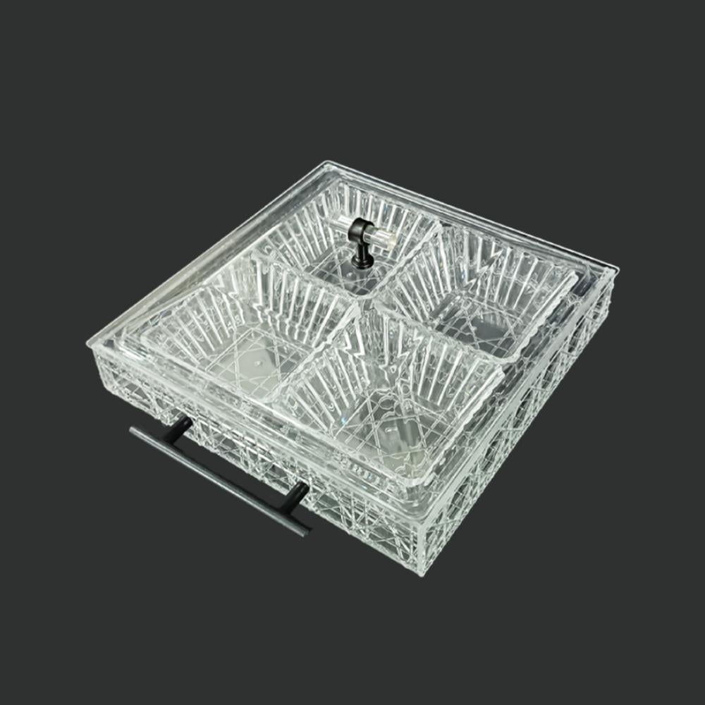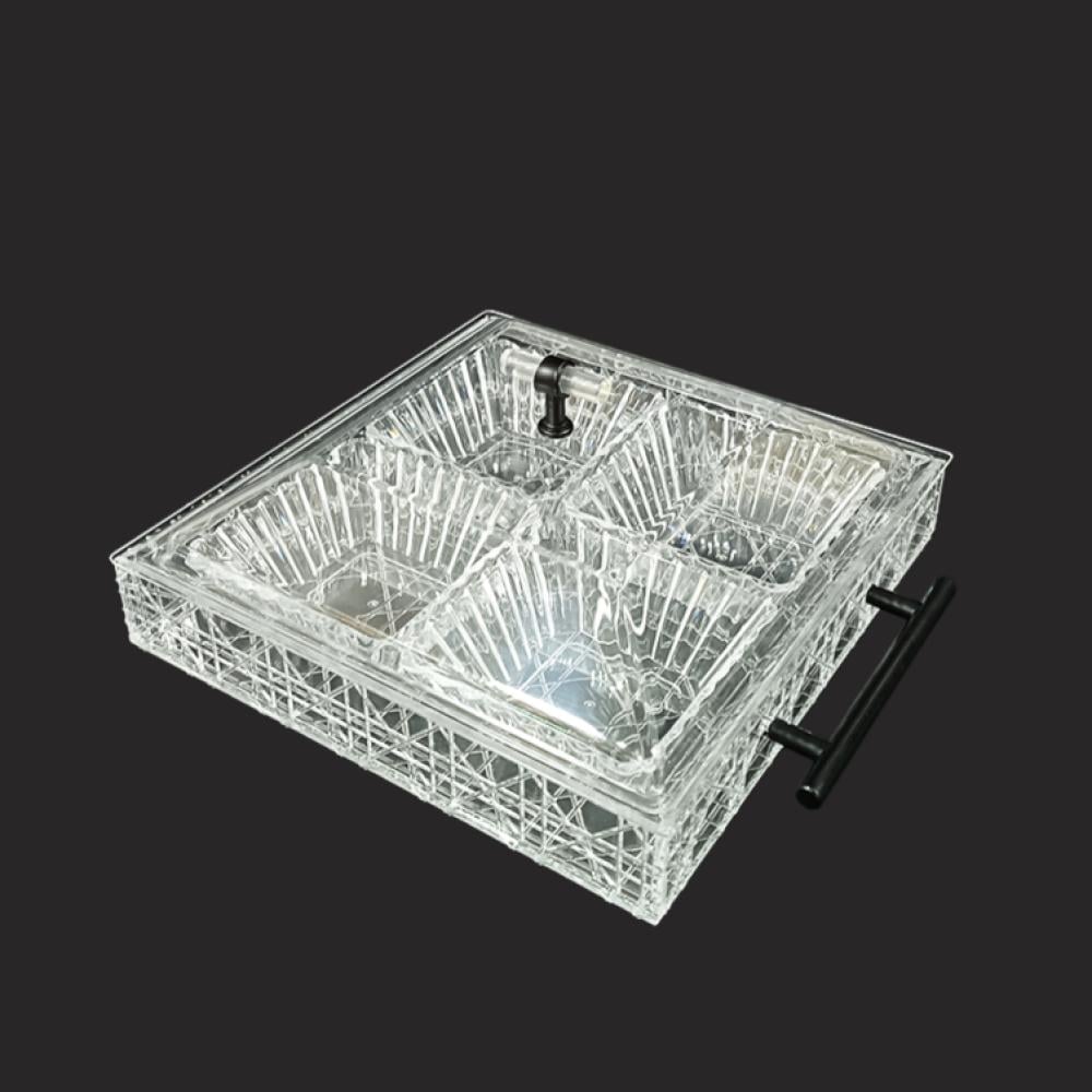 صينية تقديم اكريلك منقوش شفاف 4 خانات