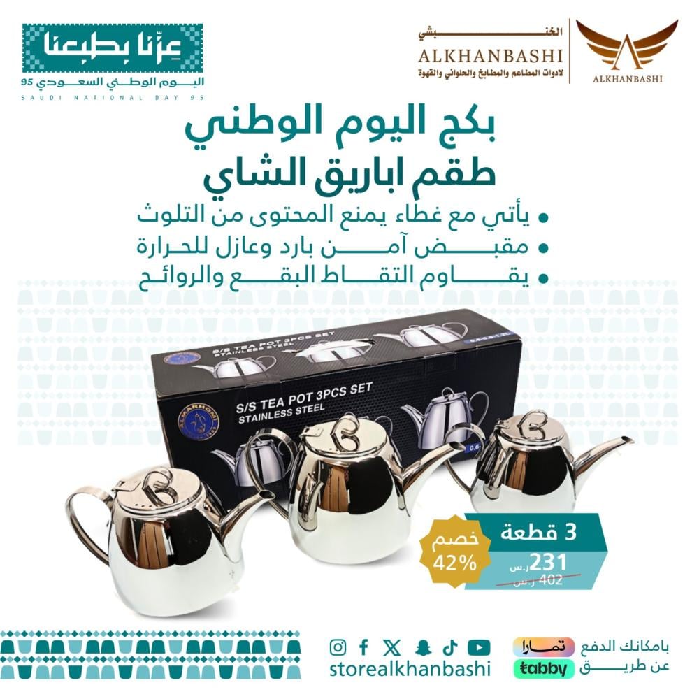 - طقم مكون من 3 قطع من أباريق الشاي.
