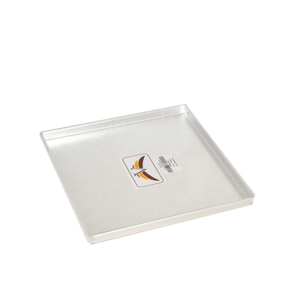 Rectangular metal oven trays, stainless and easy to clean.
